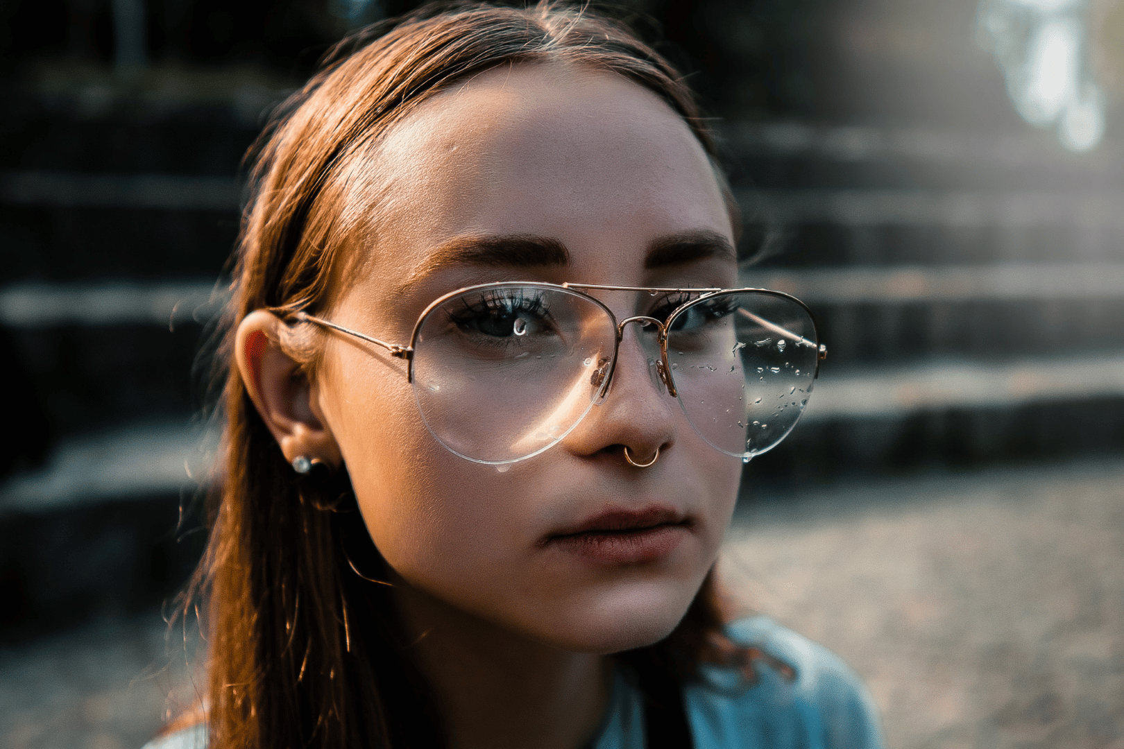 Gafas de montura metálica ovalada y estrecha